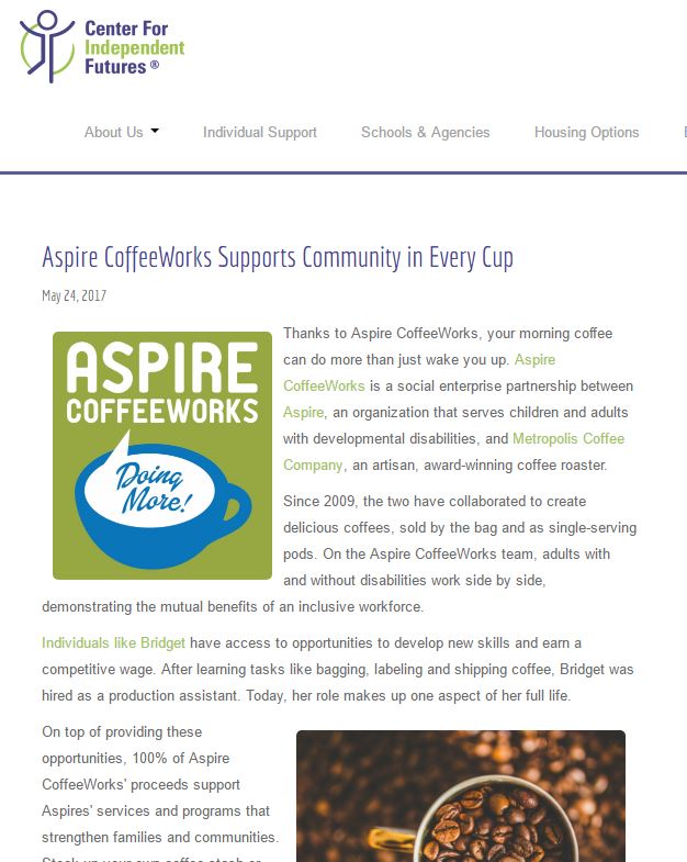 Read the Center for Independent Futures’ blog post about Aspire CoffeeWorks! Aspire CoffeeWorks Supports Community … read more